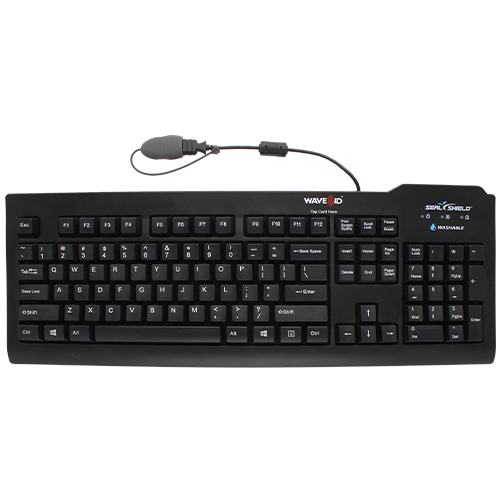 SEAL CLEAN™ Medical Grade Backlit Keyboard w/ RFIdeas pcProx® Nano Series 125KHz Contactless Card Reader – Dishwasher Safe & Medical Grade, Waterproof Product Protection – ANSI / US-English / Quick Connect USB / Black