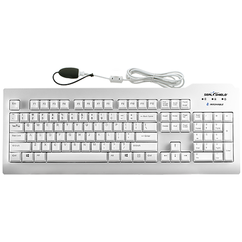 Seal Clean™ Waterproof Keyboards are 100% waterproof & dishwasher-safe. IPx8-certified and designed to withstand industrial-grade disinfectants. True type keyboard with tactile feel. Features a 6′ USB Cable and keylock. Full-Size numeric keypad and Laser-etched keycaps enhance durability and product longevity throughout regular and vigorous cleaning. (White).