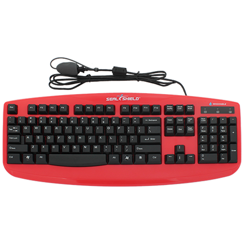 Seal Storm Keyboards from Seal Shield.TM True type keyboard with tactile feel and full travel keys for smooth and natural typing. Features a USB Connection Cable with RF shielding and a Seal Cap for easy plug-and-play. Washable & dishwasher-safe keyboard is IP66- certified and designed to withstand industrial-grade disinfectants & cleaners. Laser-etched keycaps enhance durability and product longevity throughout regular and vigorous cleaning. ABS plastic construction with steel screws (Red Pantone Color = PMS186C)