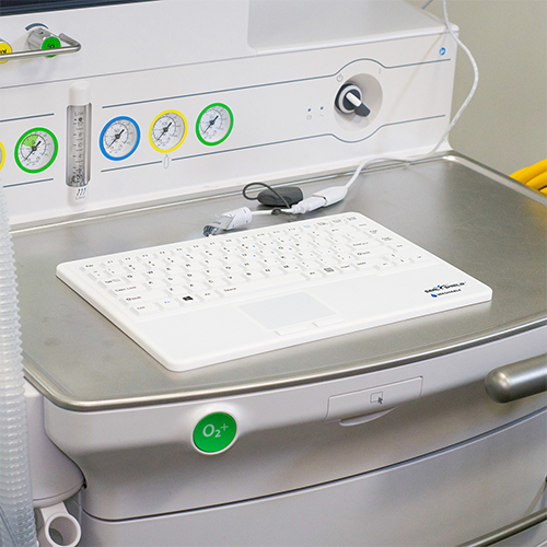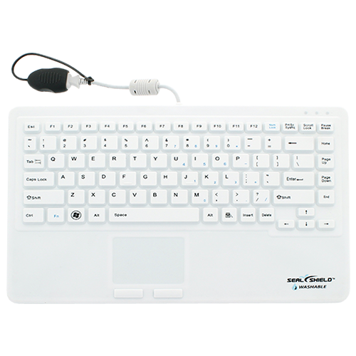 Seal Touch Glow™ Small Style, Waterproof Backlit Keyboards w/Touch Pad are 100% waterproof & dishwasher-safe, IP68-certified and designed to withstand industrial-grade disinfectants. LED backlit characters provide visibility assistance in darker settings. (White) (USB)